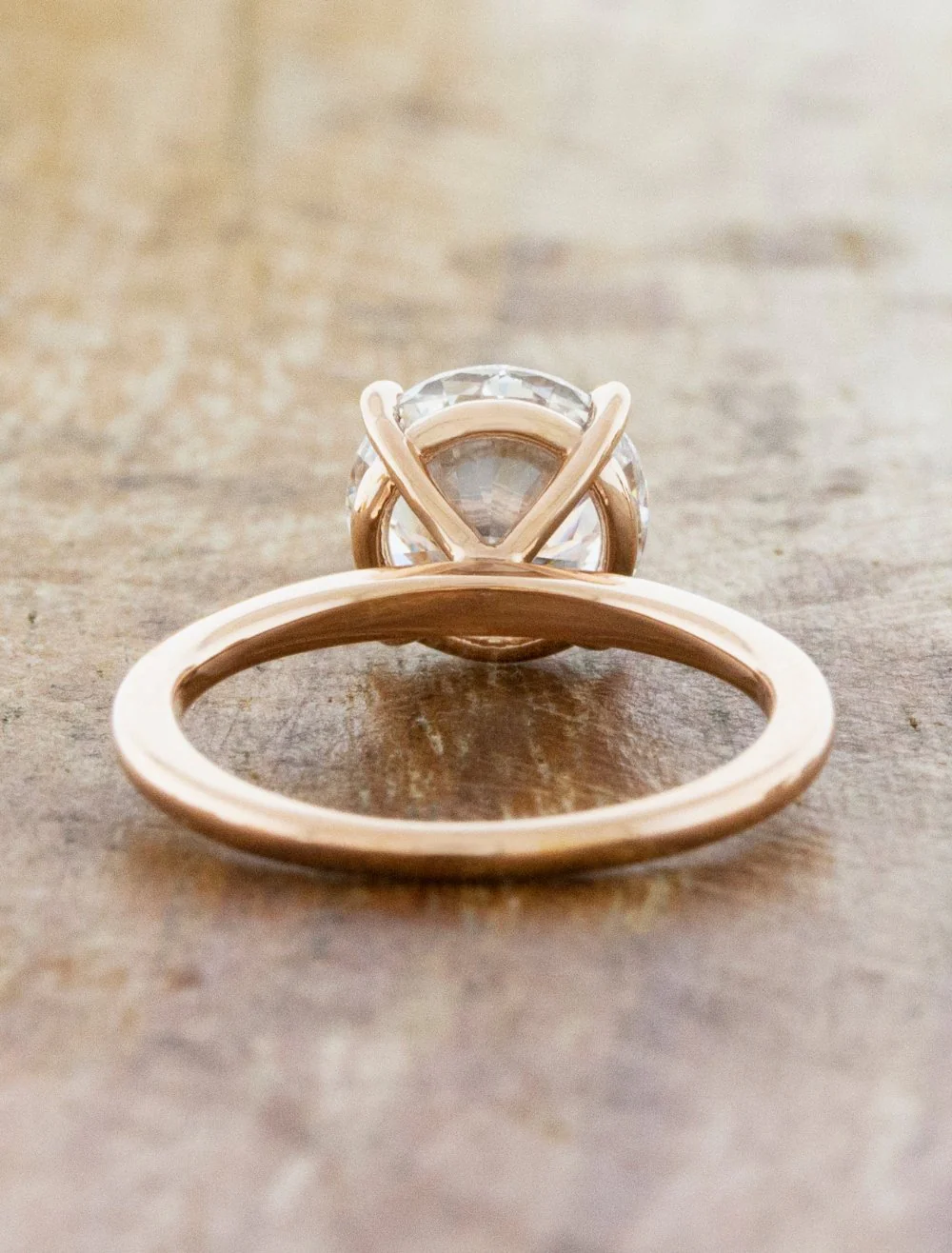 Ariya is a timeless, minimalist dream! The brilliant 2.00ct E VVS2 round cut lab grown diamond speaks for herself as she takes center stage atop the 14k rose gold band.