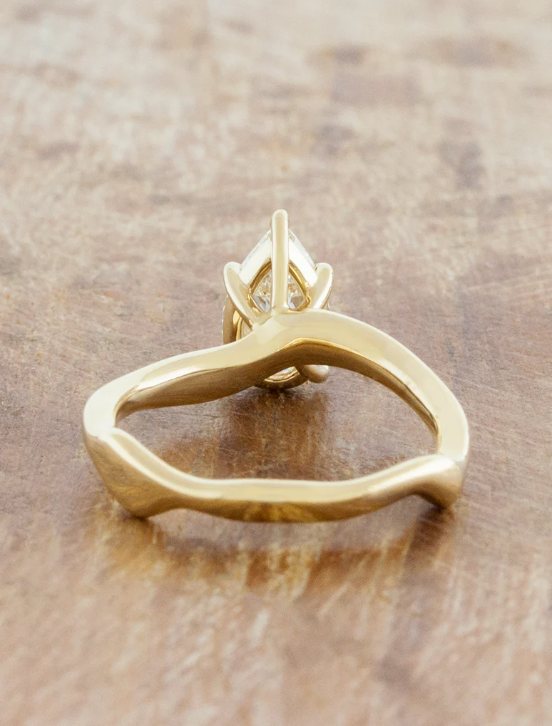 Introducing the Aurora - a sculptural solitaire engagement ring that reimagines the classic with an organic twist. Its wave-like band flows gracefully around a center stone, evoking natural movement and timeless elegance.