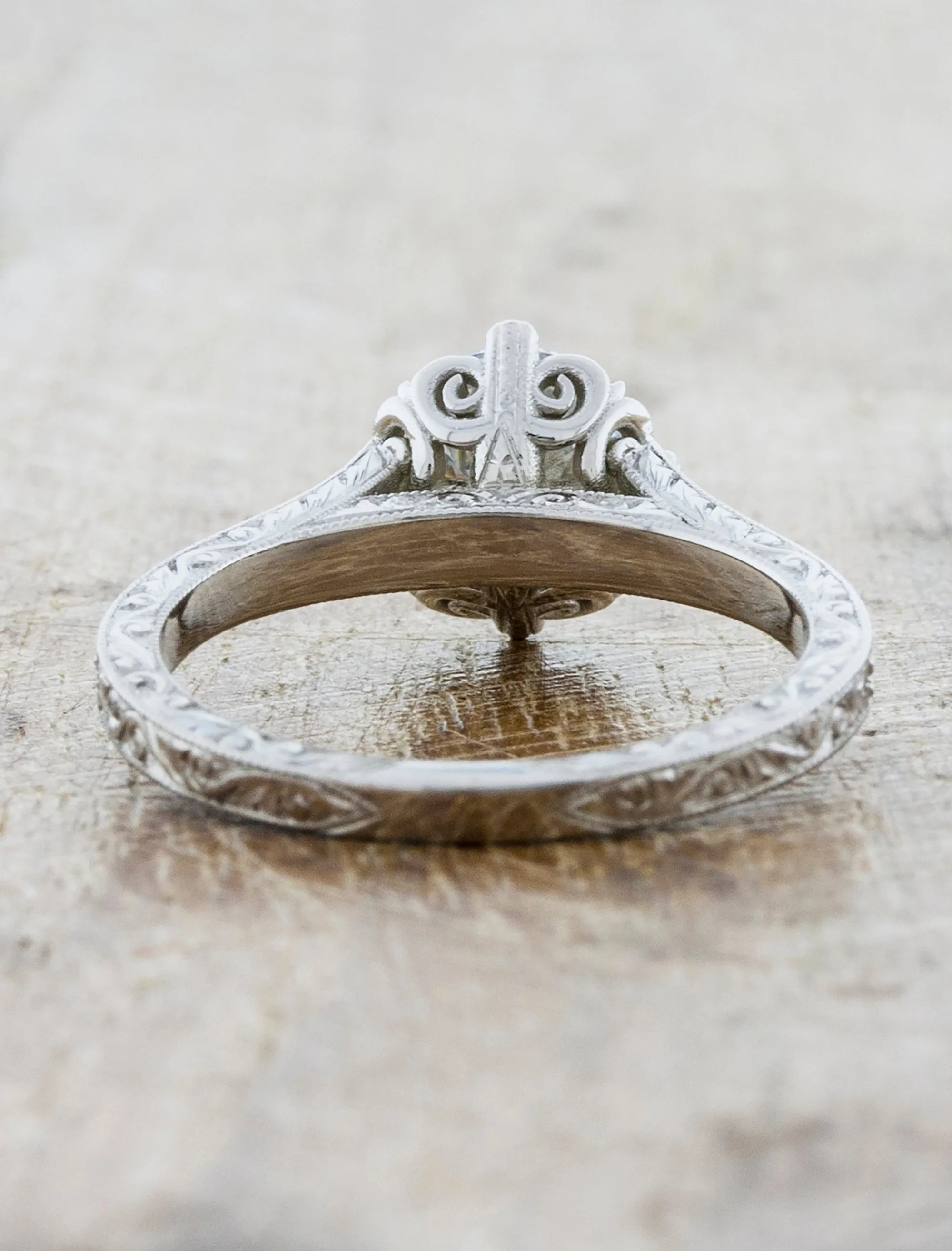 Drop-down diamond options represent our recommended grade, which maximizes size for value, while maintaining eye-perfect clarity and giving you a colorless look. For other diamond options, see our Shop Diamonds tab or speak to one of our design consultants. This design can also be made with other stone shapes.