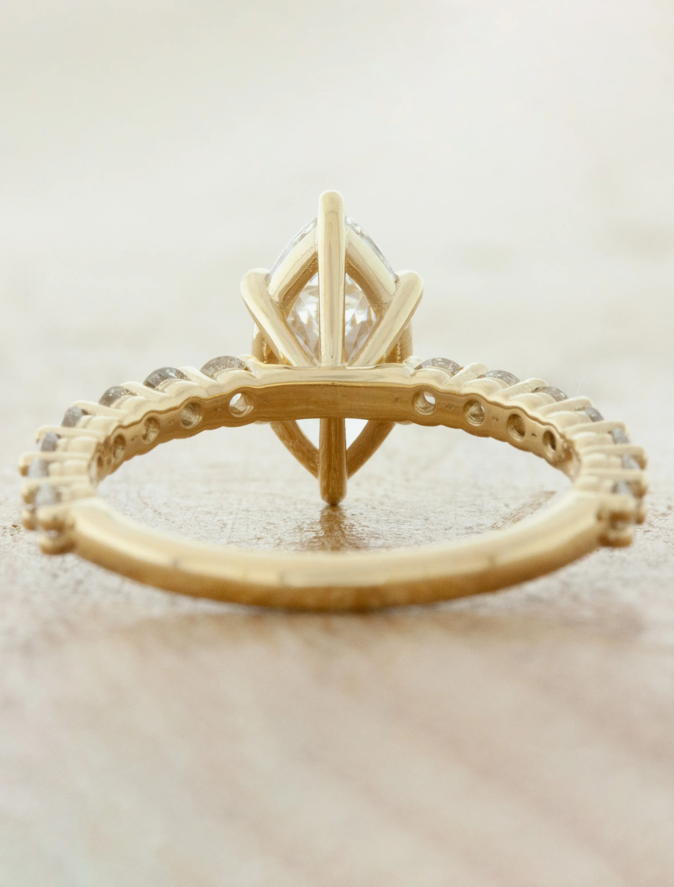 The Palma leaves you in complete awe. She is everything and more; refined, sophisticated, dazzling and a miraculous example of excellent craftsmanship. She glistens from every pore of her entity. The 1.27ct E VS1 lab grown marquise cut diamond at the center of her heart and soul is super unique and completes the 14k yellow gold Palma in the most perfect way.