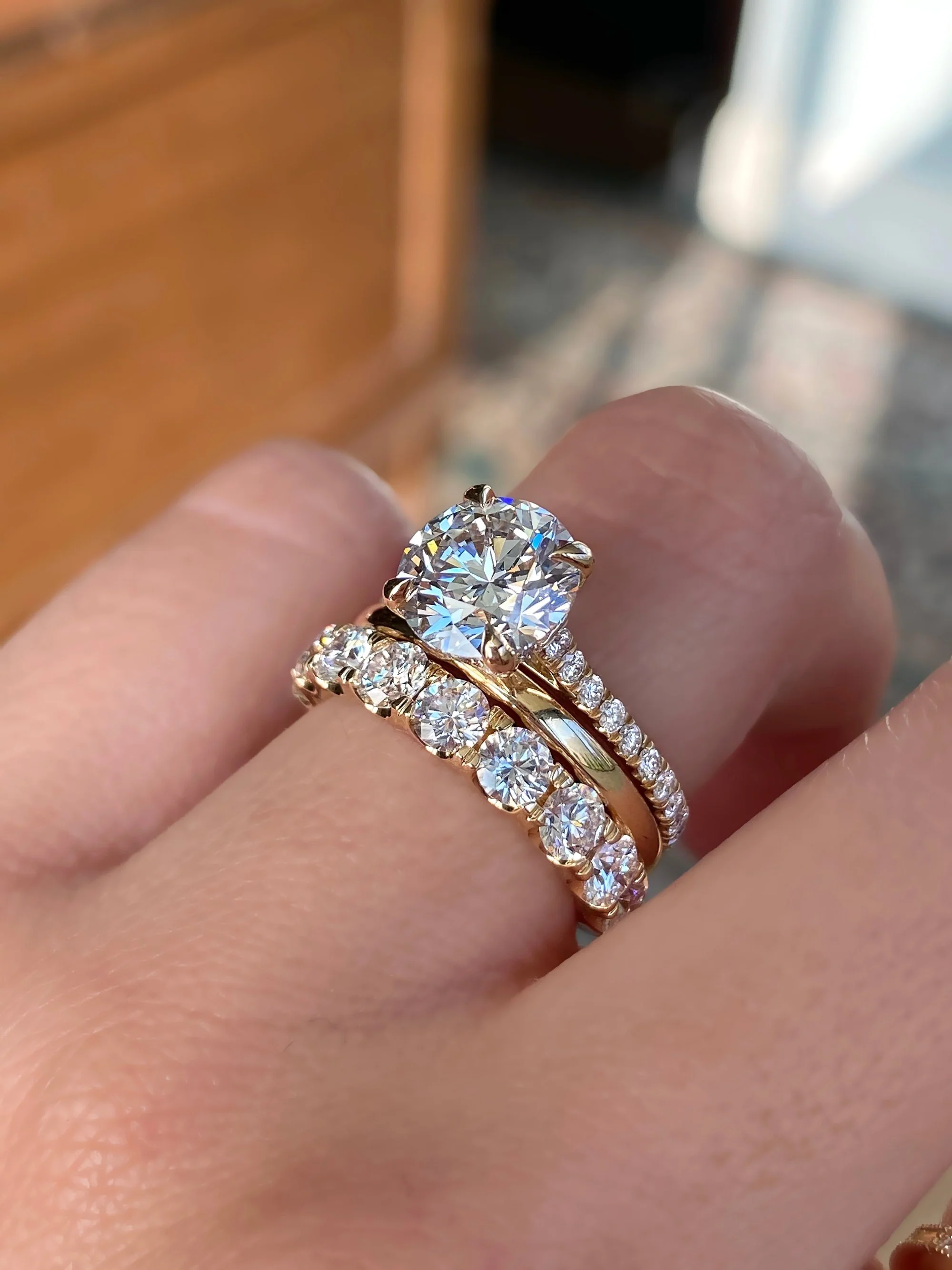 Sarisa is a classic solitaire that embodies timeless sophistication. Featuring a captivating round cut center stone, this design showcases graceful elegance, while the pavé diamond band adds a layer of sparkling allure. The cathedral style is subtle, giving the illusion that the center stone is set lower to the hand.