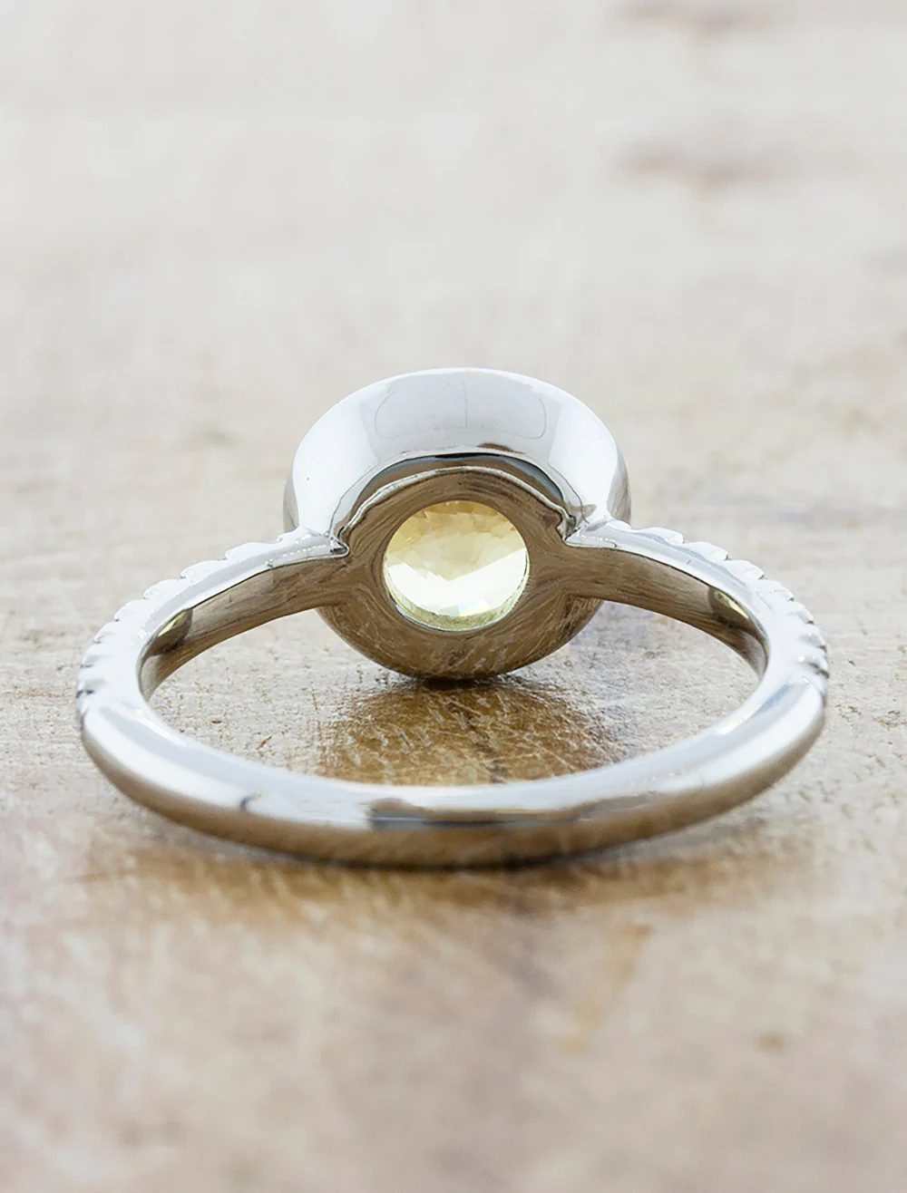 Melzi - where elegance meets simplicity. This chic bezel-set solitaire features a sleek design that embraces modern minimalism. The bezel encircles a vibrant east-west set oval sapphire sitting atop a shimmering diamond band, creating a refined silhouette that's effortlessly stylish.